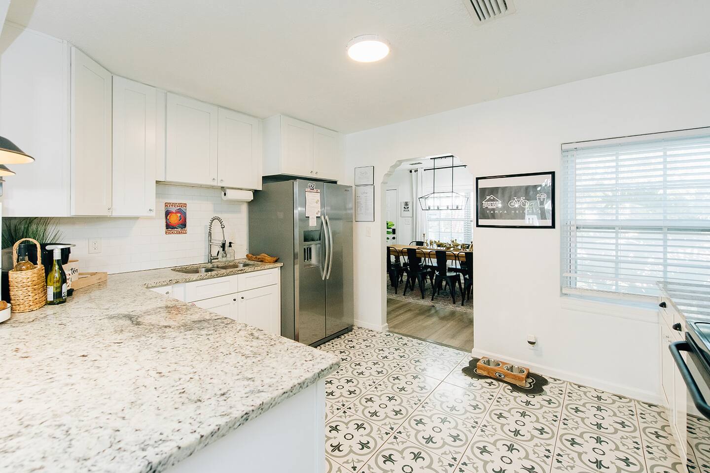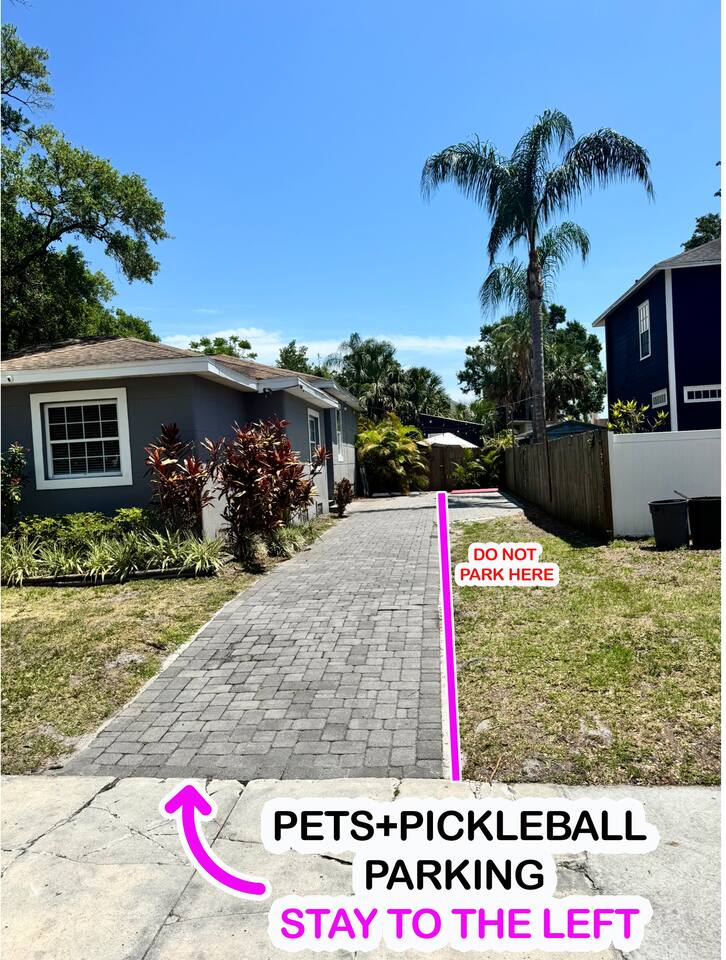 This stunning designer home is not your average vacation rental—it's specifically designed to cater to both dogs and pickleball enthusiasts! With a capacity to sleep 10 people, this spacious and pet-friendly retreat offers a truly unique experience. The interior of the home is tastefully decorated, boasting modern furnishings and stylish touches throughout. The open concept layout provides ample space for your group to relax and unwind. The living room features comfortable seating and a large flat-screen TV, perfect for movie nights or catching up on your favorite shows. The kitchen is fully equipped with state-of-the-art appliances and everything you need to prepare delicious meals. Enjoy your culinary creations in the dining area, which offers seating for the whole group. The highlight of this property is the dedicated pickleball court! Whether you're a seasoned player or new to the sport, you'll love the opportunity to engage in friendly competitions right at your doorstep. We provide all the necessary equipment, so you can grab a paddle and enjoy a game with your friends or family. We understand that your pets are part of the family, which is why we welcome them with open arms. The entire home has been designed to accommodate dogs, with features such as dog beds, water bowls, and a fenced backyard for them to play and roam freely. When you're not playing pickleball or spending time with your furry friends, take advantage of the bicycles available to explore the charming neighborhood. Tampa Heights offers a vibrant atmosphere with its trendy shops, restaurants, and entertainment options. We welcome all guests even if you don't have a pet or love top play pickleball (yet). If you love football we are close to the stadium. If you love hockey, we ae close to the arena. If you ae here for a convention, dont worry we are close to that also. (Max 3 Pets: $150 Per pet) Key Features: - Unique designer home in Tampa Heights - Sleeps 10 people comfortably - Pet-friendly with dedicated dog amenities - Private pickleball court with equipment provided - Modern furnishings and stylish decor - Fully equipped kitchen and dining area - Spacious living room with flat-screen TV - Fenced backyard for pets to play - Bicycles provided for neighborhood exploration Our location: - 0.4 Plymouth park & playground - 0.4 Duran park, basketball courts, playground, baseball field - 0.5 miles to woven water brewing company - 0.8 to armature works - 0.9 to river walk - 1 mile to water works park - 1 mile to Bob Gilbertson ymca - 1.1 miles to sprouts - 1.2 miles Julian b lane riverfront park - 2.5 miles to Raymond James stadium and home of the Tampa Bay Buccaneers - 3.2 miles to Amalie Arena and the home of our Stanley Cup Champions, Tampa Bay Lightening - 5 miles to Tampa international airport Please Note: A tiny home is also located on this property. While there are no shared common areas for guests, the driveway is shared to provide access to the tiny home.