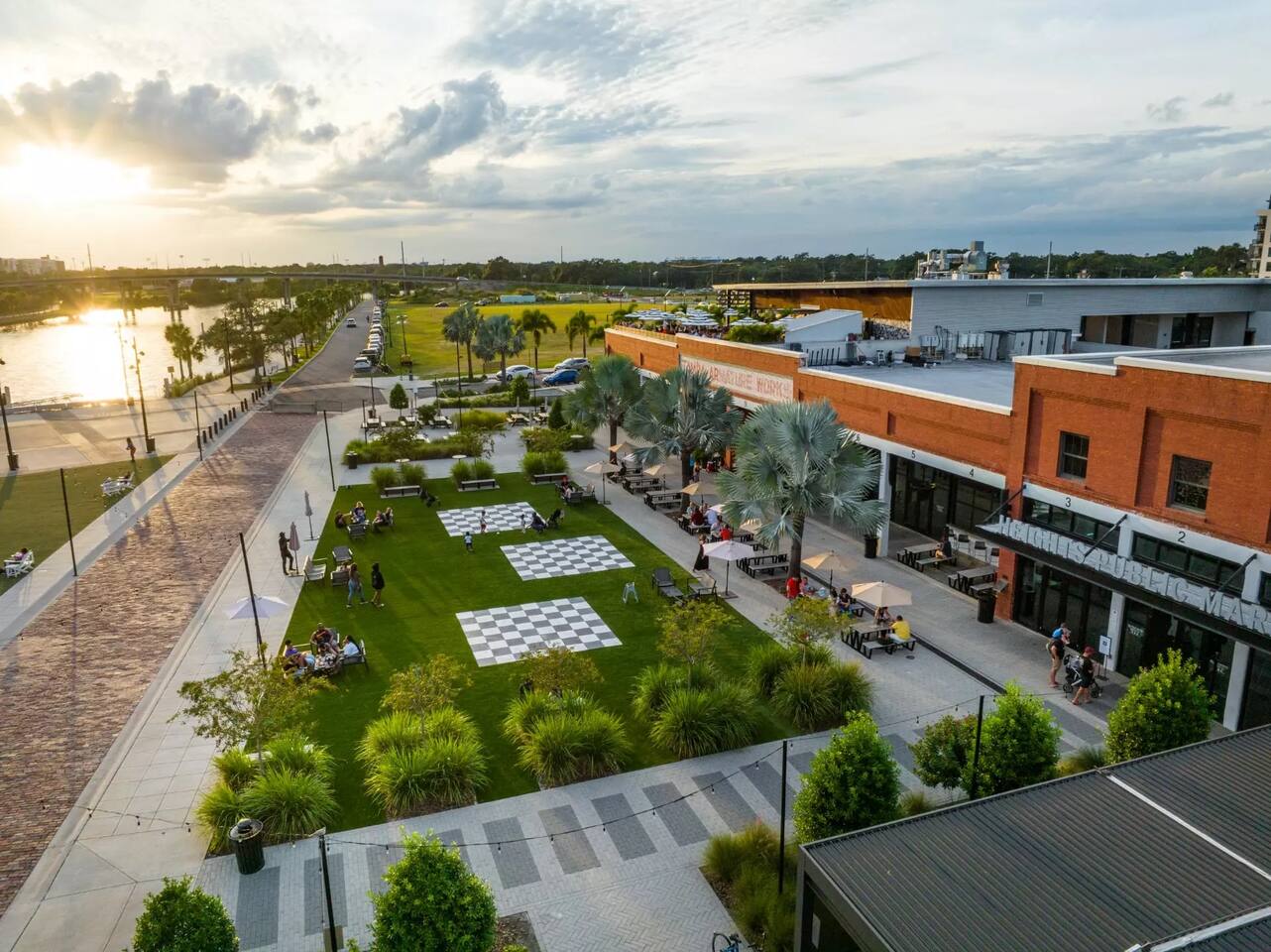 Located in the Tampa Heights neighborhood, Armature Works became an instant classic. It’s right on the edge of the Hillsborough River, making it accessible to boats as well as other modes of transportation. The market itself has a large outdoor area with tables for eating and socializing. Inside the renovated building, you’ll find the public market, event spaces, a co-working space and more. There is a park within walking distance with a playground where you can enjoy a picnic with family and friends The nearby river walk connects you to Tampa’s vibrant downtown community