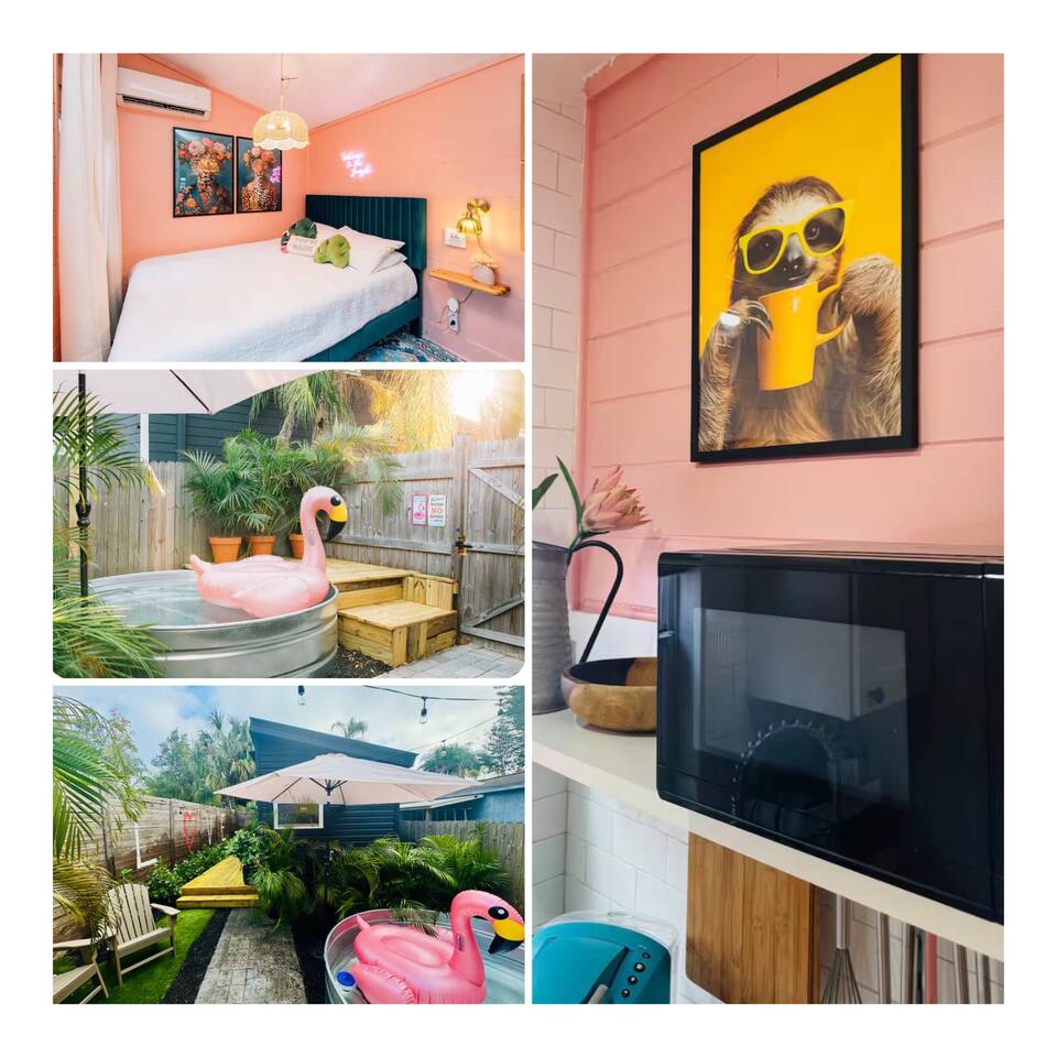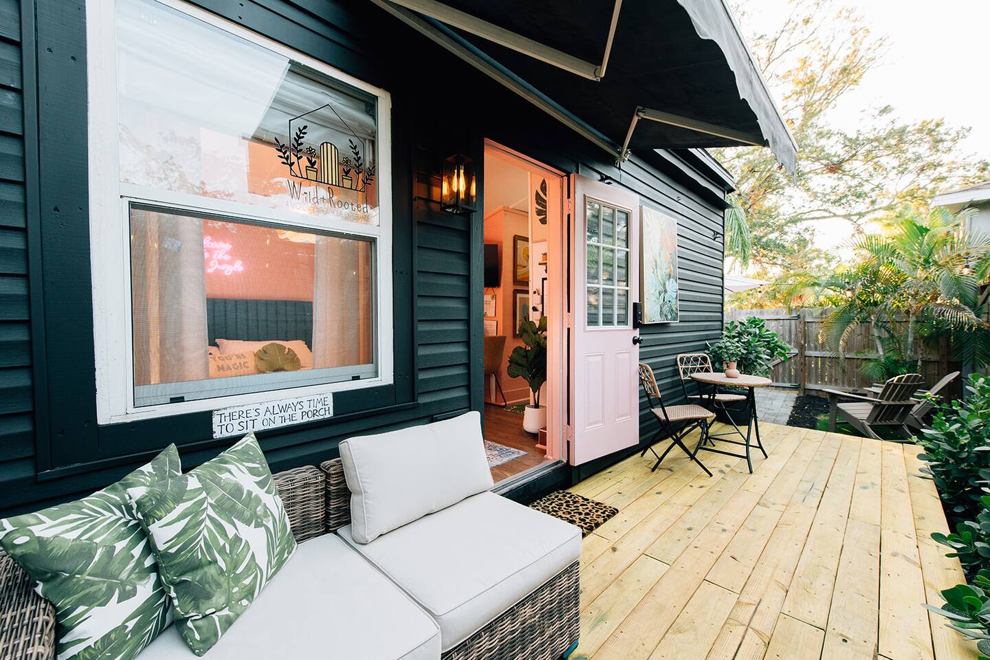 Wild & Rooted features a stock tank pool for a unique and refreshing experience—perfect for cooling off in Tampa’s warm weather! The stock tank is not heated. There is a pickleball court next door that may cause some noise disturbances, though rarely a cause for concern, we do want to make guests aware. The tiny home design maximizes space and comfort but may not be ideal for guests requiring larger accommodations. The unit is about 160 sq ft. There is no oven or stove but offers an air fryer, hot plate, and microwave. There is no dishwasher. The bathroom sink is cold water only but hot water is available just steps away at the kitchen sink. Riverside Heights is a walkable, family-friendly neighborhood; however, you may encounter typical Florida wildlife such as lizards and bugs, especially in warmer months. We recommend you pack sunscreen and bug spray. Free street parking is available at the unit. We recommend you bring one car for ease and convenience. The location is close to Tampa's top attractions, including Armature Works, Riverwalk, and major sports, concert venues, and the airport. We ask all guests to respect our home and neighborhood by observing quiet hours and treating the space with care. Let us know if you’d like us to offer additional details about your stay! Professional commercial laundry service is included for move-in and move-out to ensure 5⭐️ cleanliness.
