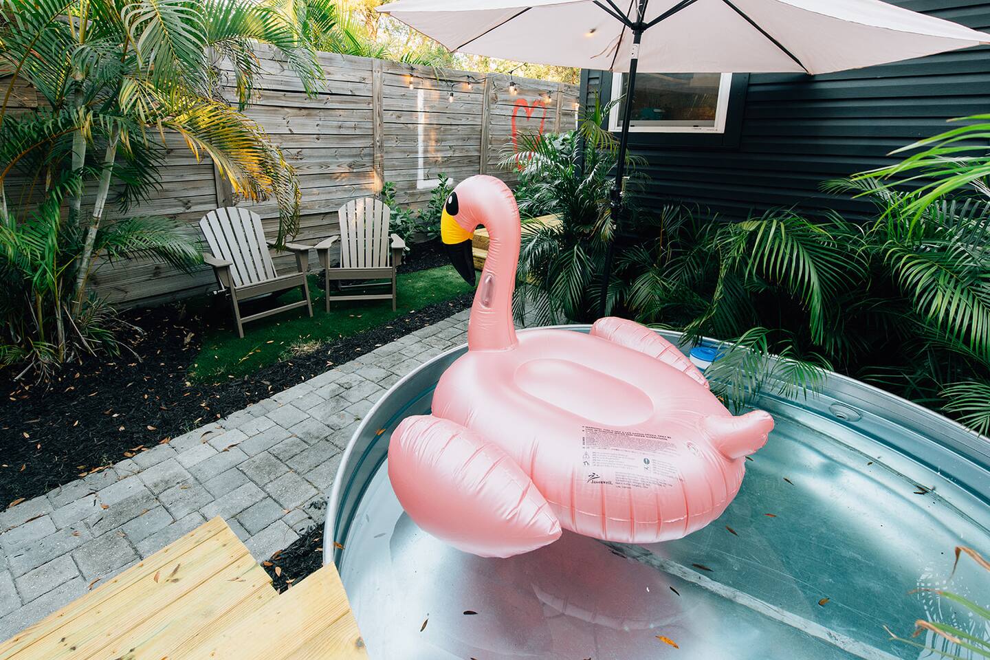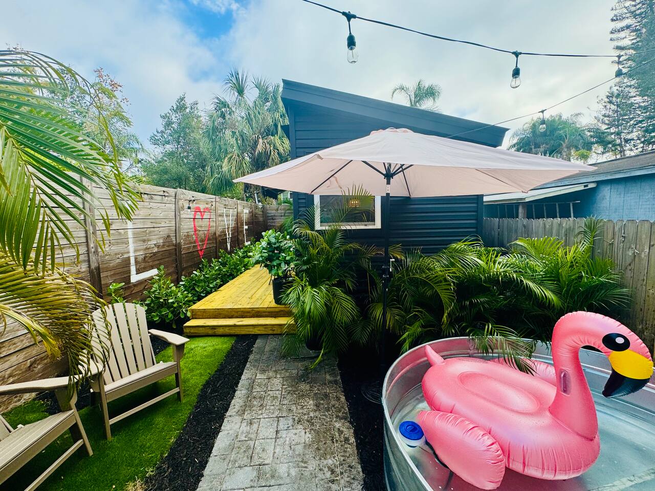Welcome to Wild & Rooted – Your Jungle Themed Micro Vacation Experience! Step into the wild and unwind in our beautifully curated tiny home, "Wild & Rooted," a jungle-themed oasis designed for adventure and relaxation. This micro vacation home features a refreshing stock tank pool, perfect for cooling off and immersing yourself in nature-inspired tranquility. Perfect for couples, solo travelers, and of course your precious fur babies! Nestled in the charming Riverside Heights neighborhood, Wild & Rooted offers a walkable, family-friendly setting near parks and playgrounds. Enjoy easy access to Tampa’s vibrant attractions, including Armature Works and the scenic Riverwalk, where you’ll find the city’s best dining, shopping, and entertainment. Sports fans and music lovers will appreciate the home's proximity to Tampa’s stadiums, top sports teams, and premier concert venues. With top restaurants nearby and the airport just a quick drive away, your stay promises both comfort and convenience. Our stock tank pool is the perfect place to kick back and enjoy a refreshingly good time! In the summer, it’s your go-to spot for cooling off and soaking up the relaxing vibes. Feeling bold in the winter? It transforms into a cold plunge experience—because nothing says rejuvenation like a brisk wake-up call. Whether you’re unwinding under the summer stars or testing your toughness in cooler months, this pool has you covered. While diving isn’t an option, lounging, splashing, and creating unforgettable memories definitely are. Come for the charm, stay for the pool—any time of year! Wild & Rooted combines cozy charm, modern amenities, and a touch of the exotic. Book your stay today and create unforgettable memories in this one-of-a-kind getaway! Please Note: This tiny home is located on the same property as the main Pickleball House. While guests have full privacy and no shared common areas, the driveway is shared to allow access to both homes.