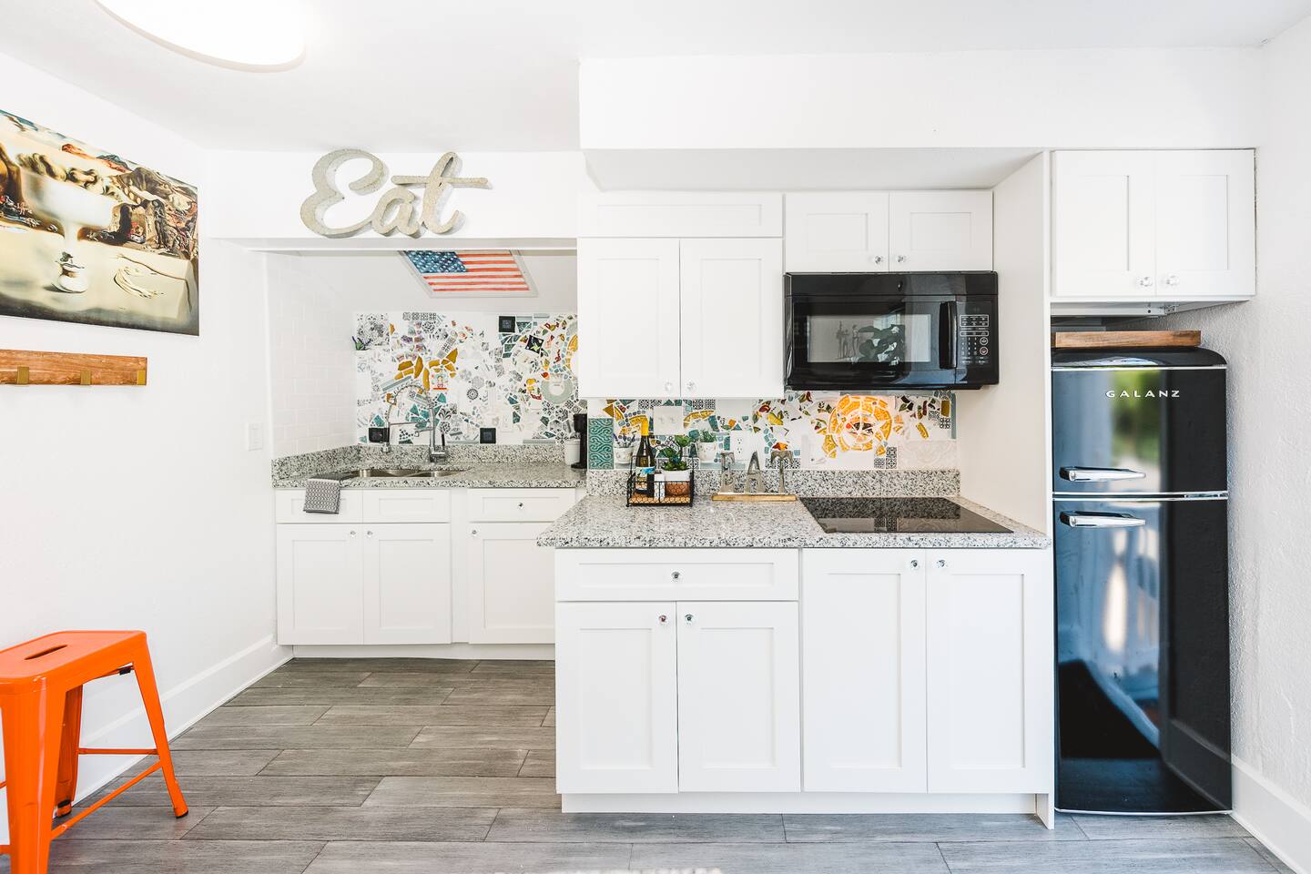 A surrealist-inspired retreat full of bold art, vintage textures, and cozy comfort. Enjoy a bright living room, full kitchen, queen bed, and artistic touches throughout. Just minutes from galleries, the Pier, and downtown St. Pete. With fast Wi-Fi, private entry, and curated style, Hello Dali is ideal for couples, creatives, and anyone craving a stay that’s a little offbeat and entirely unforgettable.