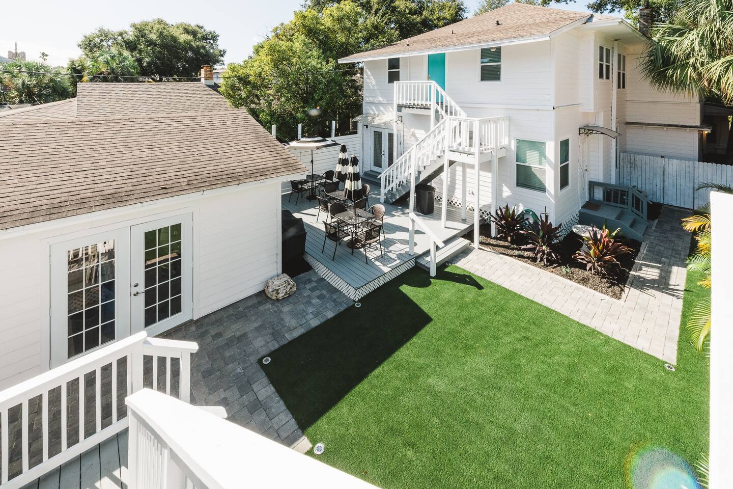 Guests have private access to the entire upstairs unit of Banyan House, including: ✔ Three spacious bedrooms & two full bathrooms ✔ Fully equipped kitchen with modern appliances & dining area ✔ Large living room with a comfortable sofa & 50” Smart TV ✔ Private entry with a hassle-free self-check-in system (smart lock/keypad) ✔ Front porch & shared outdoor space for relaxing 🚗 Parking: Free on-street parking for your vehicles (specify number). 🌐 WiFi: High-speed internet for work & streaming. 🧺 Laundry: In-unit washer & dryer with detergent provided. ☀️ Climate Control: Central AC & heating for year-round comfort. Guests also have shared access to the outdoor areas, perfect for unwinding after a day in downtown St. Pete!