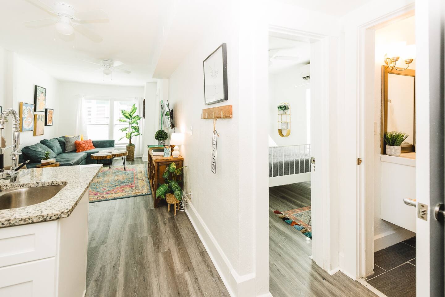 Welcome to Artist's Way, your private creative retreat in the heart of St. Petersburg's vibrant art scene! This unique 2-bedroom, 1-bathroom apartment is a celebration of local creativity, featuring original artwork and an eclectic, gallery-like atmosphere. This space is designed to inspire relaxation and productivity for up to four guests. KEY FEATURES: • Living Area: Unwind and stream your favorite shows on the 50” Smart TV. • Fully Equipped Kitchen: Complete with granite countertops, stainless steel appliances, and everything you need to cook and dine in comfort. • Bedrooms: Two restful bedrooms, each furnished with a comfortable queen bed. • Private Patio: Step outside onto your own covered patio for a morning coffee or to unwind after a day of exploring. • Pet-Friendly: We welcome your furry friends to join you in this art-filled oasis.